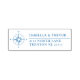 Classy yet modern nautical themed lengthwise ink stamps. The stamps feature a nautical old compass rose in a vintage style with the name of the bride and groom towards the right side of it.