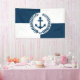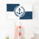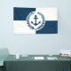 Nautical themed design with anchor and laurel wreath decoration over blue and white geometric background