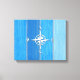 Nautical themed design with compass decoration on striped blue and grey wooden background. Please note this is not made of wood, it is a wood graphic print.