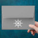 Nautical themed design with sailing wheel decoration on striped blue and grey wooden background. Please note this is not made of wood, it is a wood graphic print.