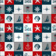 Nautical themed design with navy and aquatic decoration in seamless white, red, blue and grey squares