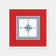 Nautical themed design with compass decoration in striped squares on red background