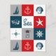 Nautical themed design with navy and aquatic decoration in seamless white, red, blue and grey squares