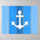 Nautical themed design with anchor decoration on striped blue and grey wooden background. Please note this is not made of wood, it is a wood graphic print.