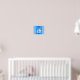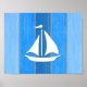 Nautical themed design with sailing boat decoration on striped blue and grey wooden background. Please note this is not made of wood, it is a wood graphic print.