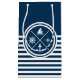 Nautical themed design with nautical symbols (anchor, sailing boat, sailing wheel, compass) decoration on white and navy blue striped background.