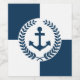 Nautical themed design with anchor and laurel wreath decoration over blue and white geometric background