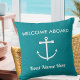 Nautical Turquoise Anchor Welcome Aboard Boat Name Cushion