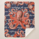 Bold vintage pink octopus illustration over navy blue sherpa fleece blanket perfect for your nautical or beach themed home.