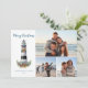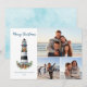 Nautical Watercolor Christmas Lighthouse 3 Photo Holiday Card