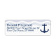 This custom address label features a nautical design. A navy blue coloured boat anchor is printed near the centre. Sea waves or a water pattern appears near the top in a pale blue colour, with darker waves floating across the bottom. A sample name and address are printed to the left of the anchor in a sophisticated blue font. It's perfect for a boating lover.
