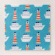 Waves, lighthouses, and a cruise liner dance in this seamless pattern. An oceanic journey for packaging, fabric, and more.