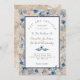 Nautical Wedding Beach Sea Shell and Flowers pink and blue wedding invitation. Shades of Blue Navy and Dusty Blue, Peach, and Pink Beach wedding products are available on a large array of products for the perfect custom beach wedding.