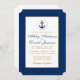 Nautical Wedding Blue Anchor Gold Invitation - Ticket Style - White Back