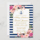 Nautical Wedding Blue Stripes Pink Floral Invite G