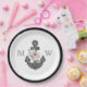 Nautical Wedding Floral Anchor Black and White Paper Plate