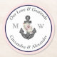Nautical Wedding Floral Anchor Navy Blue and Pink Round Paper Coaster
