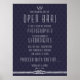 Nautical wedding Open Bar sign print poster with white anchor and customisable white text - you can add your text, bride's and groom's name and wedding date, printed on navy blue background with anchor pattern. Dimensions of the sign print (poster) are 18 inches by 24 inches (vertical).