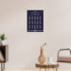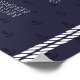 Nautical wedding seating chart with white anchor and customisable white text - you can add bride's and groom's name, wedding date and guest's names (15 tables for 10 guest at each table), printed on navy blue background with anchor pattern. Dimensions of the sign print (poster) are 18 inches by 24 inches (vertical).