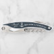 Custom nautical wedding thank you favours with the bride and groom names or initials and an anchor. Corkscrew in white and navy blue. Thank your guests and let them remember your special day forever with this keepsake.