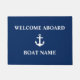 Nautical Welcome Aboard Anchor Navy Blue Your Boat Name Door Mat
