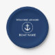 Nautical Welcome Aboard Boat Name Anchor Rope Navy Blue Party Paper Plates