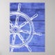 Nautical wheel wood style blue poster.