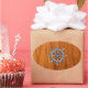 A nautical wheel design on a teak wood veneer grain style background decor. A racy modern nautical gift.
