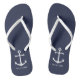 Modern Minimalist Nautical Flip Flops features white anchor with personalised name in white modern sans serif font style on navy blue background.