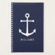 Nautical White Anchor and Custom Name on Navy Blue Planner