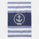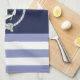 Nautical white anchor/navy knot/blue/white stripe tea towel