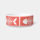 White fish bones patterned pet dish with a coral pink background and pet's initial letter.