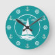 Nautical white sailboat/anchor/wheel silhouette round clock