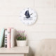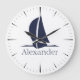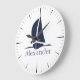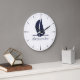 Nautical White sailboat Navy blue Coastal Monogram Large Clock