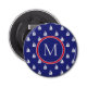This nautical monogrammed bottle opener features classic white sailboats on navy blue.  Personalise the preppy red, white and blue monogram with your choice of initial.