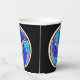 The bold design on these paper cups is based on a traditional Japanese ornamental design using a trio of Nautilus Shells filled w/ a spray of Palm Fronds. Digital Artist, Leslie Sigal Javorek, has given this the look of a hand-made ceramic mosaic in 3 vibrant shades of blue on a warm pale yellow base & black grouting. Fits in well w/ Art Deco, Modernist, Oriental, or Beach House decor. Check out HoMeArts' coordinating products!.