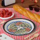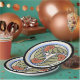 A traditional Japanese design given new life via an updated colour palette, off-set black rim and your monogram makes this paper plate a real stand-out. In soft tones of ivory, blue, mossy green & coral with black accents.
