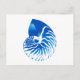 Digital sketch of a striped nautilus shell - deep cobalt blue and white shell against a white background
