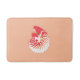 Digital sketch of a striped nautilus shell - coral orange and white shell against a pastel coral orange background bathmat