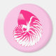 Digital sketch of a striped nautilus shell - deep fuchsia pink and white shell against a soft, ice pink background