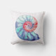 Nautilus Shell in Coral Blue and Grey on Off White Cushion