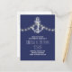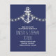 Navy nautical save the date postcard with vintage anchor, string lights. Perfect save the date for nautical, beach and destination weddings