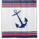 A navy anchor with red white and navy accent stripes make a great choice for the nautical bathroom.