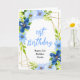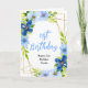 This beautiful and elegant birthday card features watercolor baby blue and navy blue flowers with foliage. The text combines handwritten script and serif fonts for a stylish and modern look. This is perfect for a spring or summer rustic birthday.