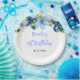 Navy and Baby Blue Floral Birthday Paper Plate