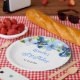 This beautiful and elegant plate features watercolor baby blue and navy blue flowers with foliage. The text combines handwritten script and serif fonts for a stylish and modern look. This is perfect for a spring or summer rustic birthday.