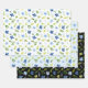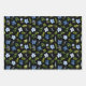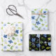 Navy and Baby Blue Flowers with Foliage Pattern Wrapping Paper Sheet