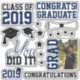 Create a cute scrapbook page for your graduate with this Navy and Black Photo Graduation Stickers. You can personalise this with the grad's photo and the class year in two spots. Phrases like 'You did it', 'Congrats! Graduate', 'Class of 2024', 'Grad' and 'Congratulations' are in black or navy text. It also features grad cap, diplomas and stars.
