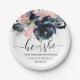 Greenery watercolor garden party plates featuring navy and blush flowers.
