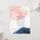 Trendy virtual online long distance baby shower invitation featuring navy blue and blush pink watercolor paint splashes and a gold geometric frame.
